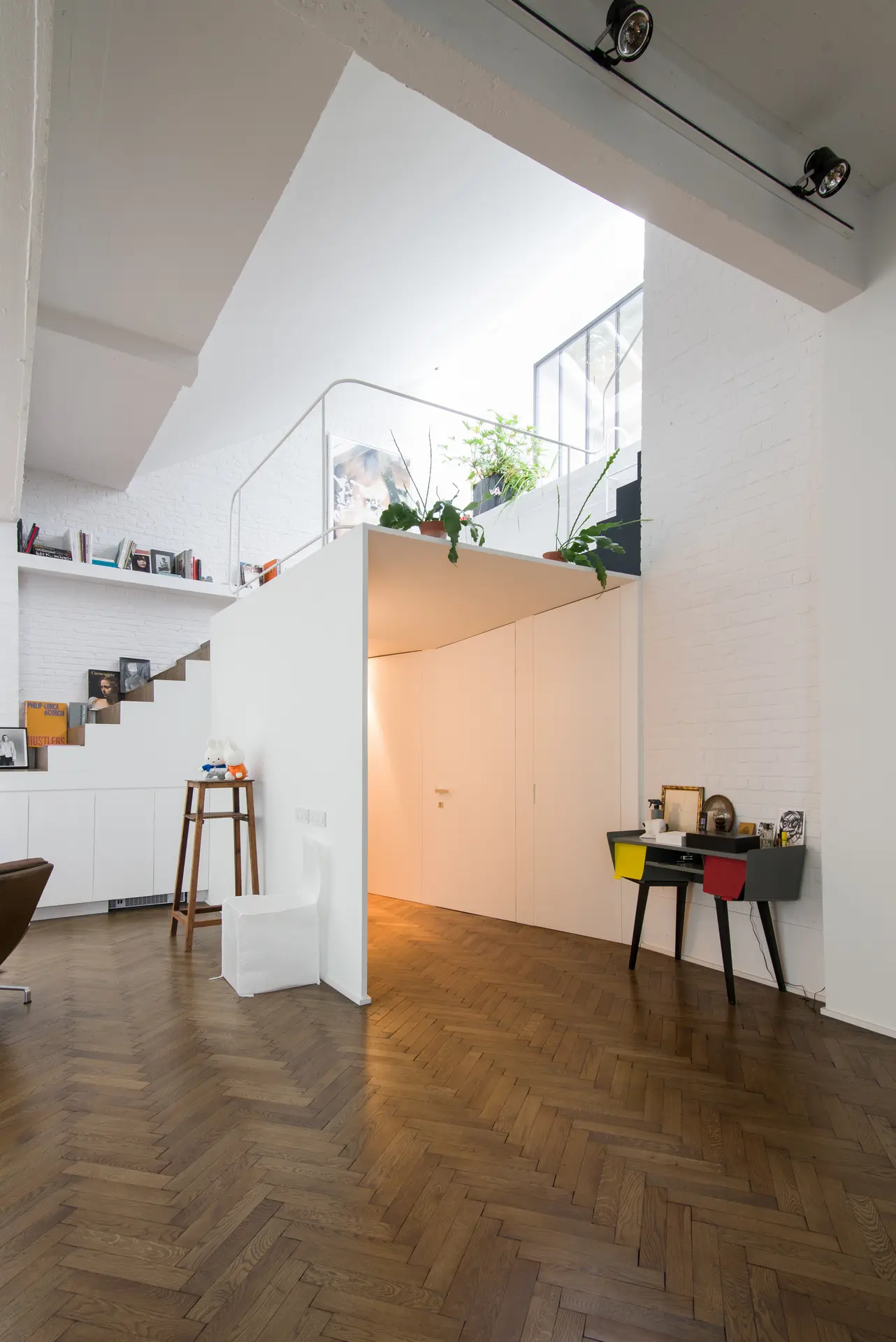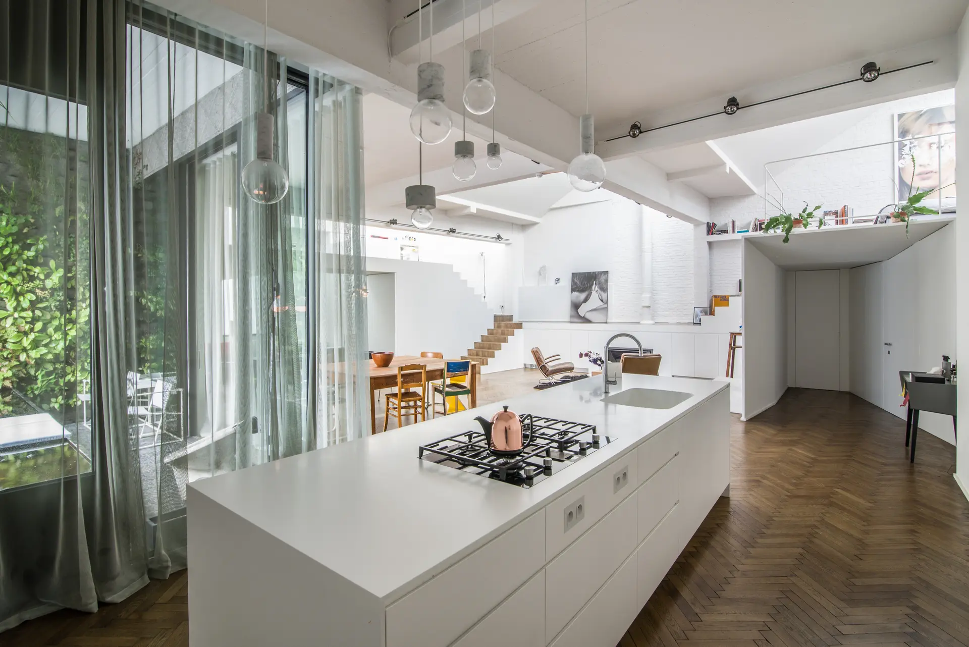 Situé au coeur du quartier de Saint-Gilles, à Bruxelles, nous avons réalisé ce projet en partenariat avec K2A, rénové et transformé complètement un bâtiment industriel en intérieur d'îlot, appartement, bureaux et commerce à front de rue.