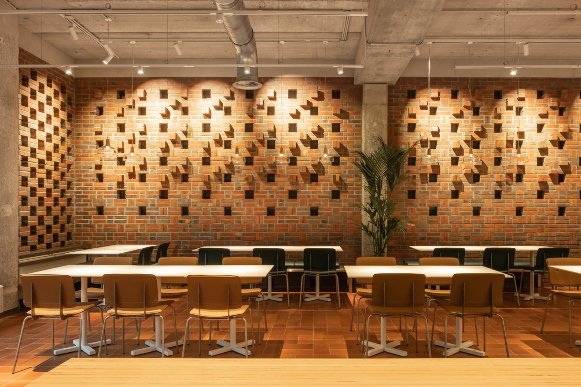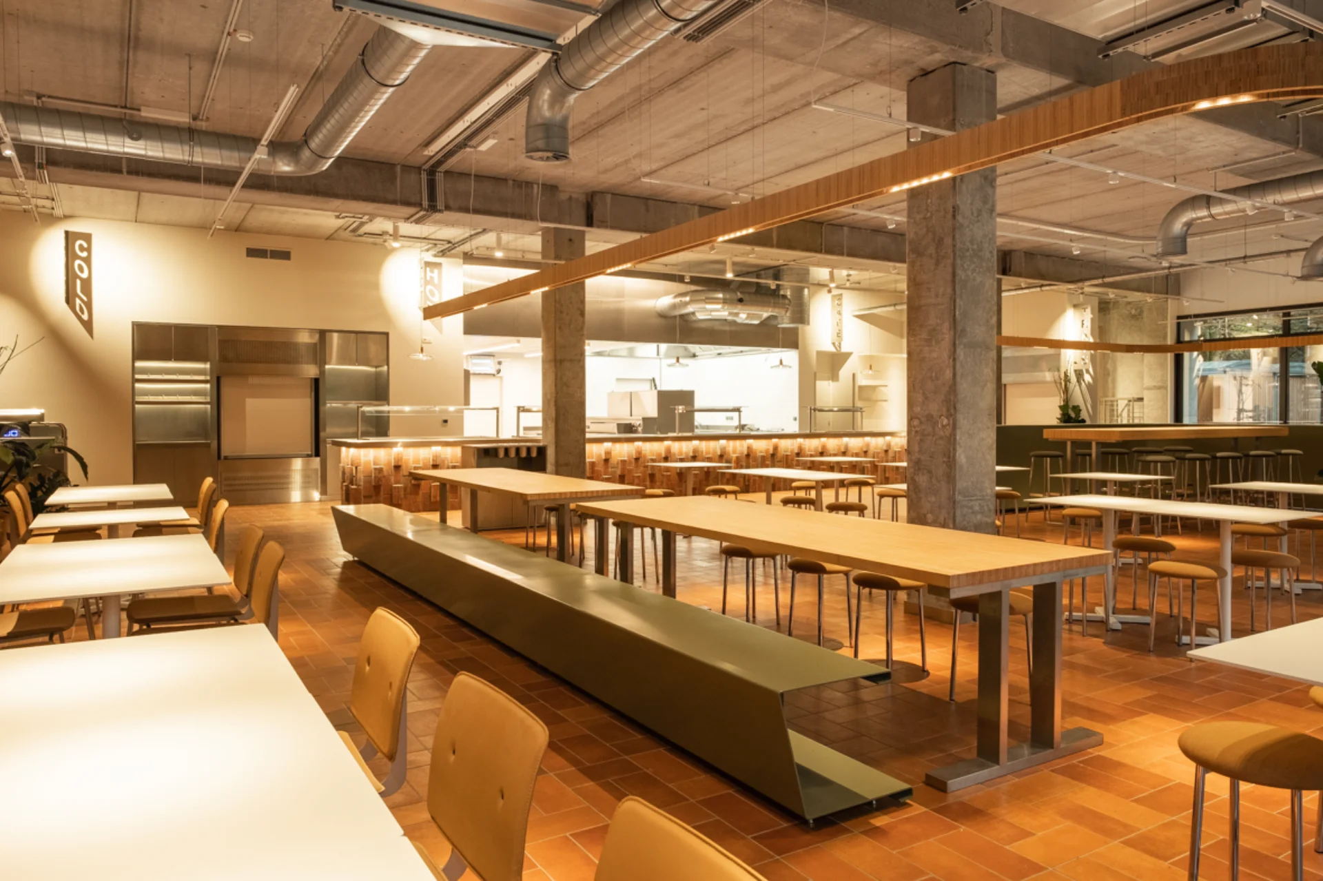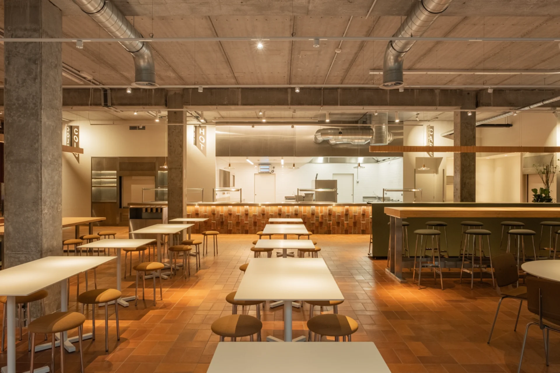 Pour la société immobilière Cofinimmo, et en partenariat avec le bureau d'architecture ncbham, nous avons aménagé la cuisine et le restaurant d'entreprise du siège belge de FedEx. Ainsi, nous avons réalisé les cloisons et les murs, ainsi que le parachèvement, les sols et les plafonds. Nous avons réalisé les travaux techniques (chauffage, plomberie, ventilation, électricité), construit et placé le mobilier.