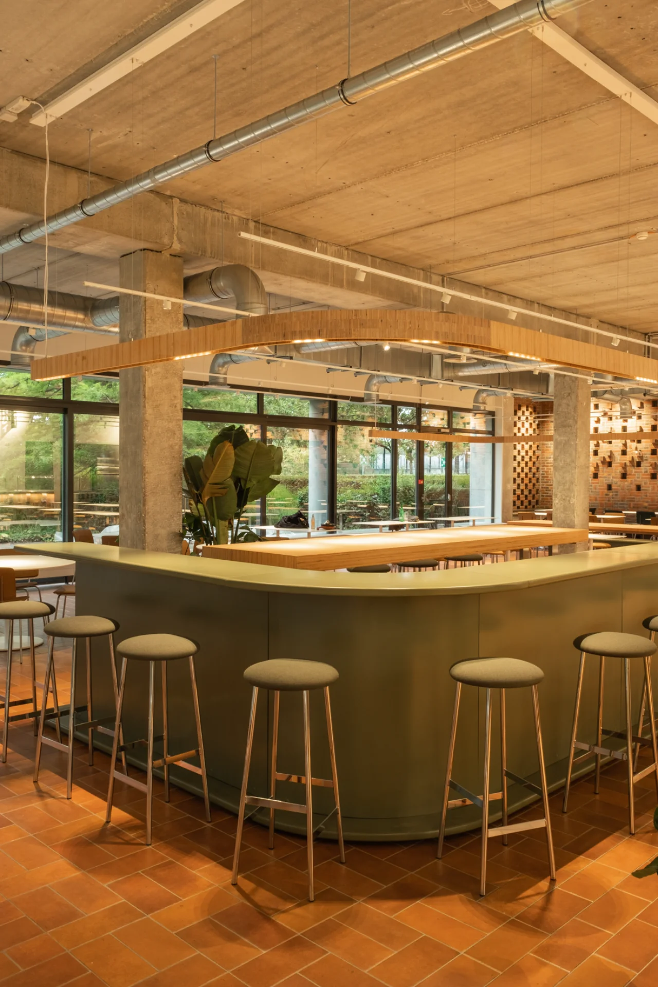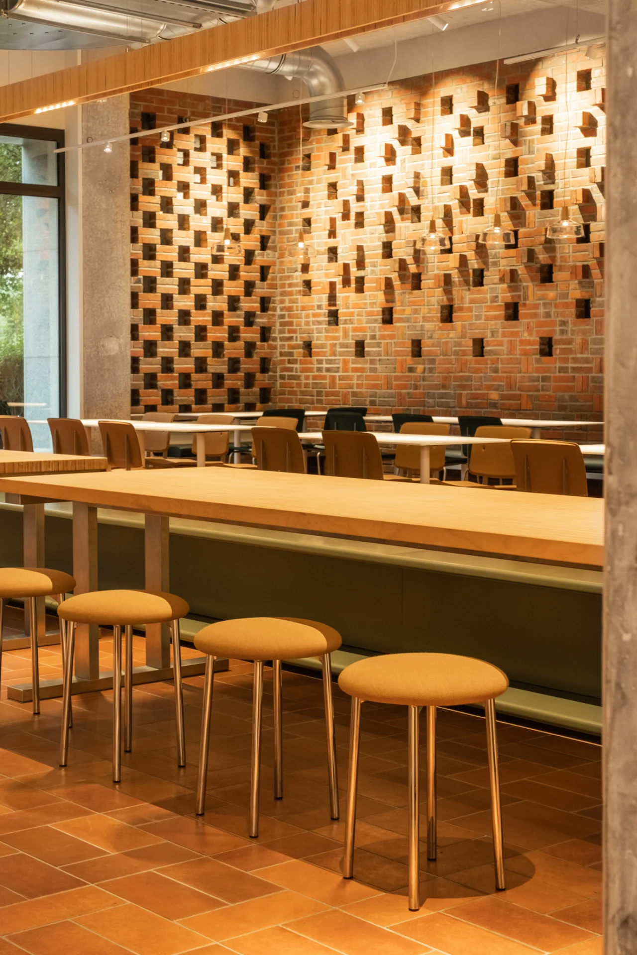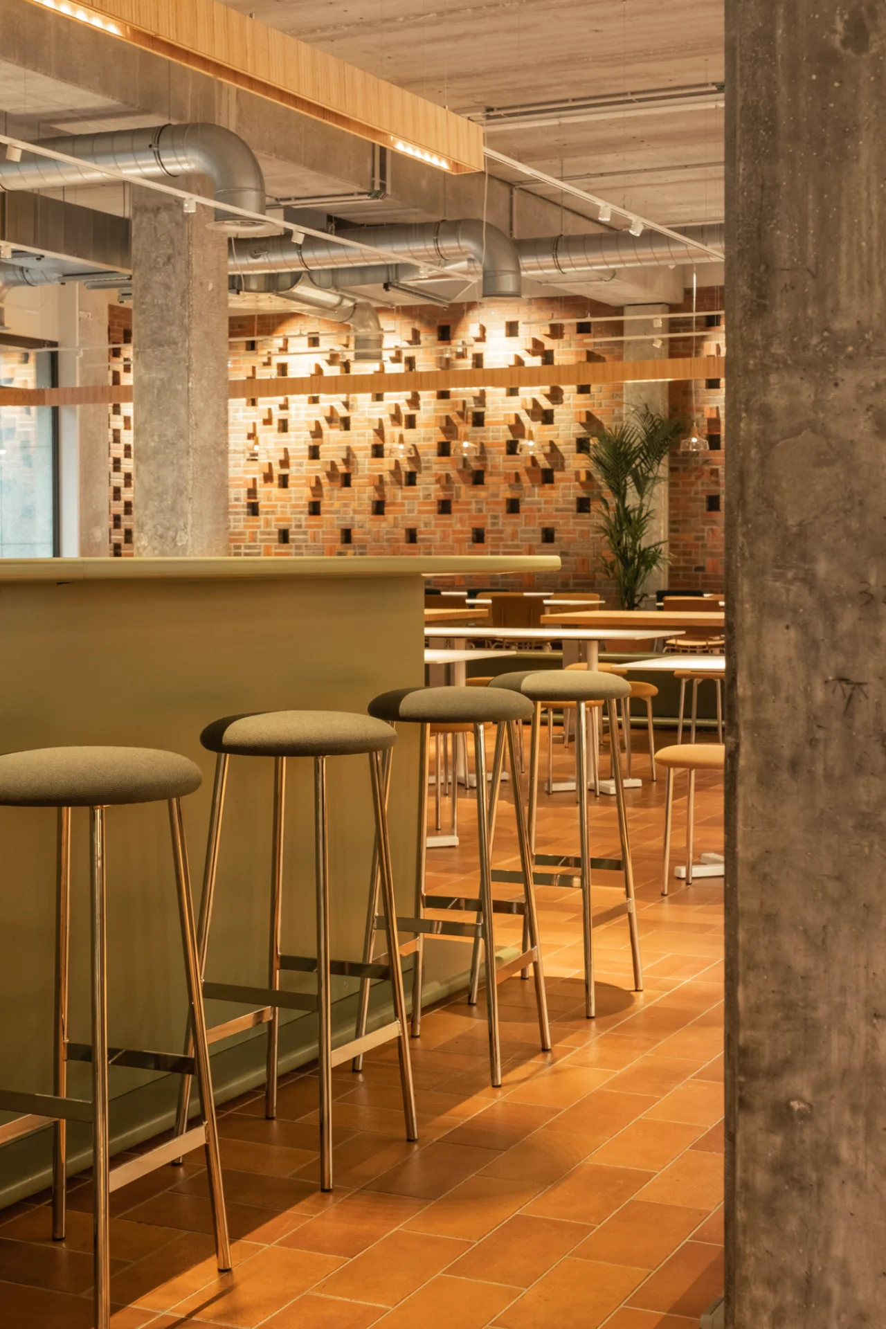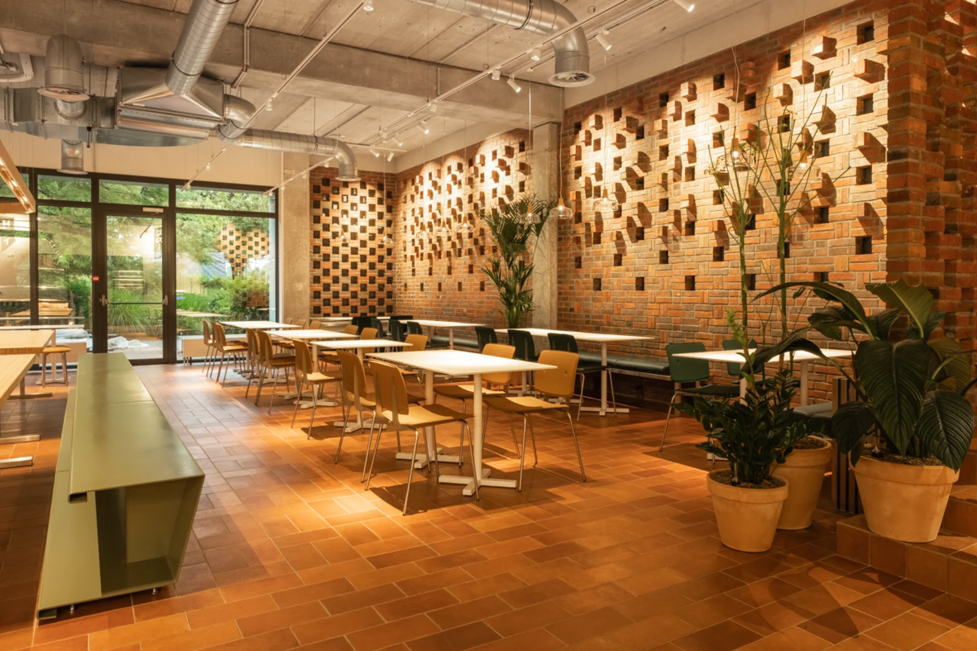 Pour la société immobilière Cofinimmo, et en partenariat avec le bureau d'architecture ncbham, nous avons aménagé la cuisine et le restaurant d'entreprise du siège belge de FedEx. Ainsi, nous avons réalisé les cloisons et les murs, ainsi que le parachèvement, les sols et les plafonds. Nous avons réalisé les travaux techniques (chauffage, plomberie, ventilation, électricité), construit et placé le mobilier.