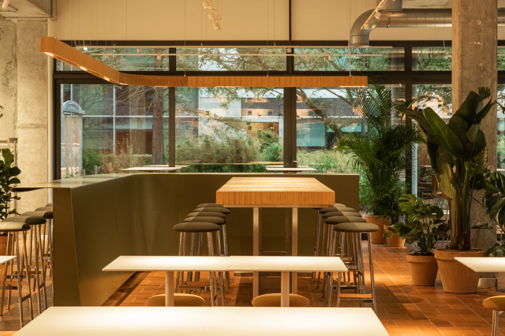 Voor vastgoedmaatschappij Cofinimmo, en in samenwerking met architectenbureau ncbham, hebben we de keuken en het bedrijfsrestaurant van het Belgische hoofdkantoor van FedEx ingericht. We hebben de binnenwanden en muren uitgevoerd, evenals de afwerking, de vloeren en de plafonds. We hebben de technische werken (verwarming, loodgieterij, ventilatie, elektriciteit) uitgevoerd en het meubilair gebouwd en geplaatst.