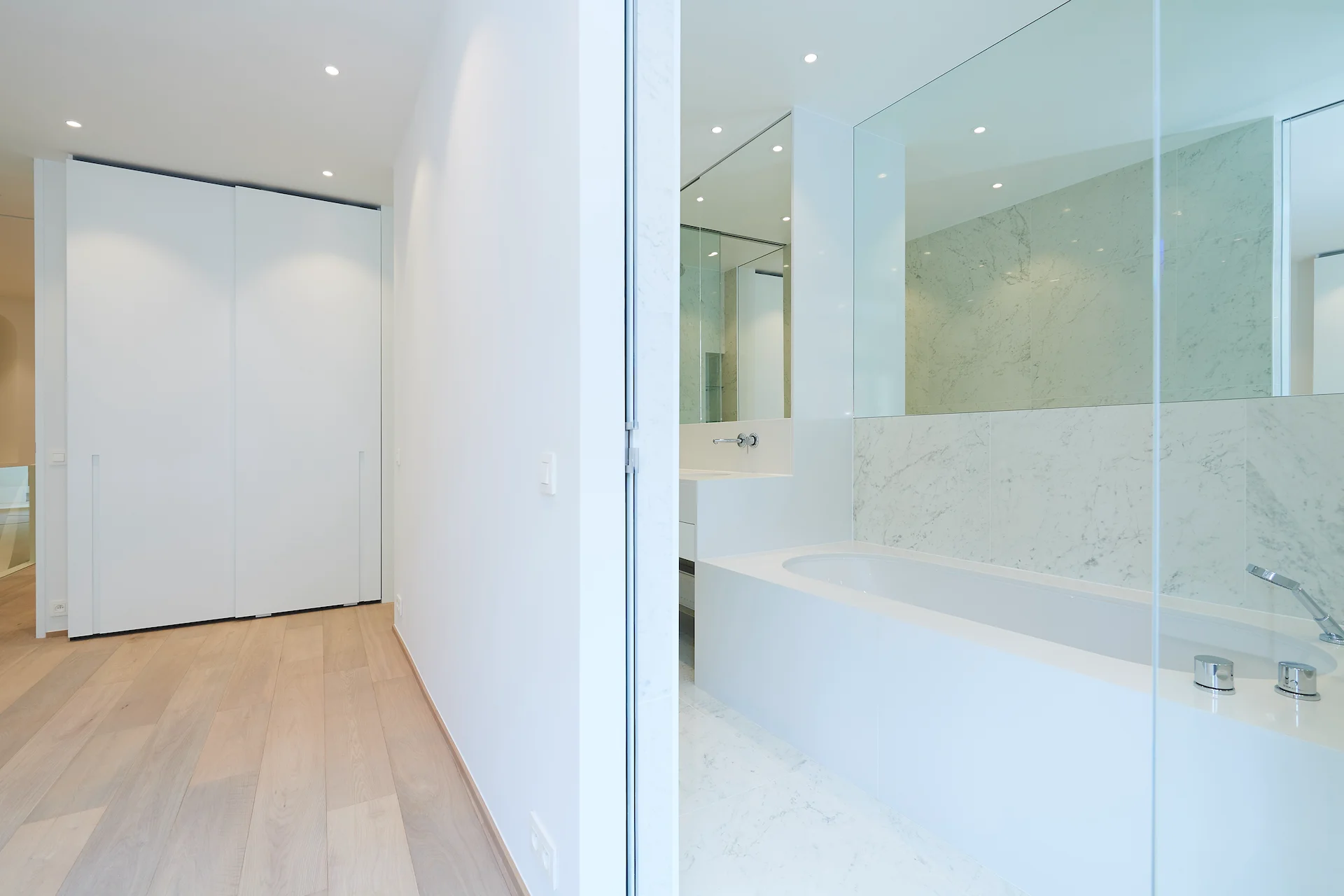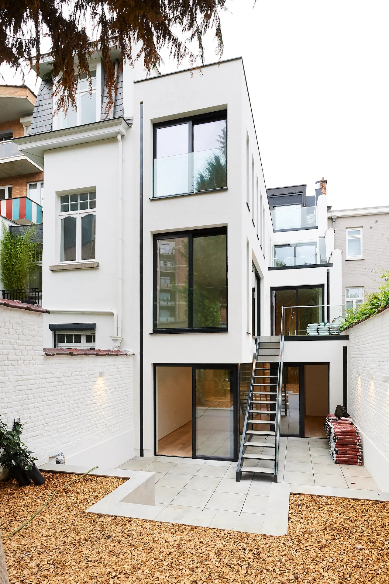 We hebben gewerkt aan de uitbreiding van deze eengezinswoning in Elsene en de transformatie ervan tot twee wooneenheden. Onze klant heeft ons de ruwbouwwerken, de afwerking en de uitvoering van de speciale technieken toevertrouwd.